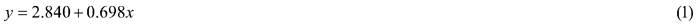 Because horizontal diameters of some small-sized branches (with the vertical diameter under 10 mm) or other not pre-localized knots were not measured in the field, the missing horizontal diameters (y) for these branches were estimated using a simple regression model (Eq. 1) in which the vertical diameter of a branch (x) was used as the only predictor.