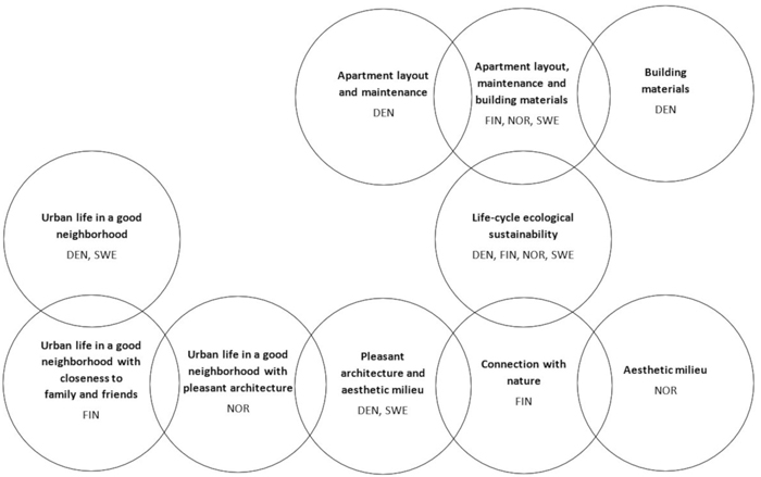 As a result of the data refinement procedure, the material comprises altogether 2191 responses from Denmark (n = 571, 26.1%), Finland (n = 573, i.e., 26.1%), Norway (n = 490, i.e., 22.4%), and Sweden (n = 557, i.e., 25.4%). Since the current form of housing does not directly reflect future housing preferences even in the short term (e.g., people may move from multi-storey houses to single-family houses and vice versa), data comprises respondents living in all types of dwellings.
