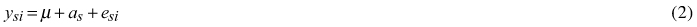 where ysi is the TC of the work element during individual replication i; μ is the grand mean; as is the fixed effect of study environment s; and esi is the error term for individual replication i.