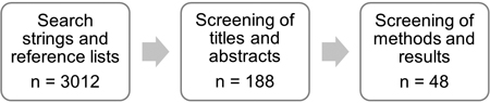 Fig. 1. The chart shows the workflow of the process of literature review of the effectiveness of four conservation measures conducted upon harvest. Number of articles (n) retained in each round is shown under each step in the process.