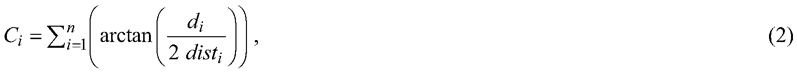 where di is the diameter at breast height (1.3 m) of a living tree i (m) measured in autumn 2022 and disti is the distance of tree i from the sub-plot center point (m). Trees inside a 2 m radius from the subplot center were accounted for, and n is the number of stems within this area.