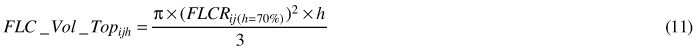 The formula for a cone was used to calculate fibre length class volume (FLC_Vol_Topijh) and total volume (Tot_Vol_Topjh) in the Top stem section.
